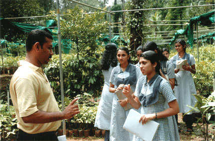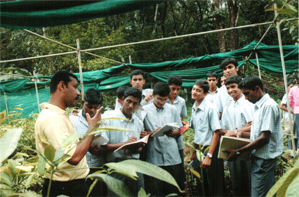 Mr.Arun explains the students when they visit the nursery.